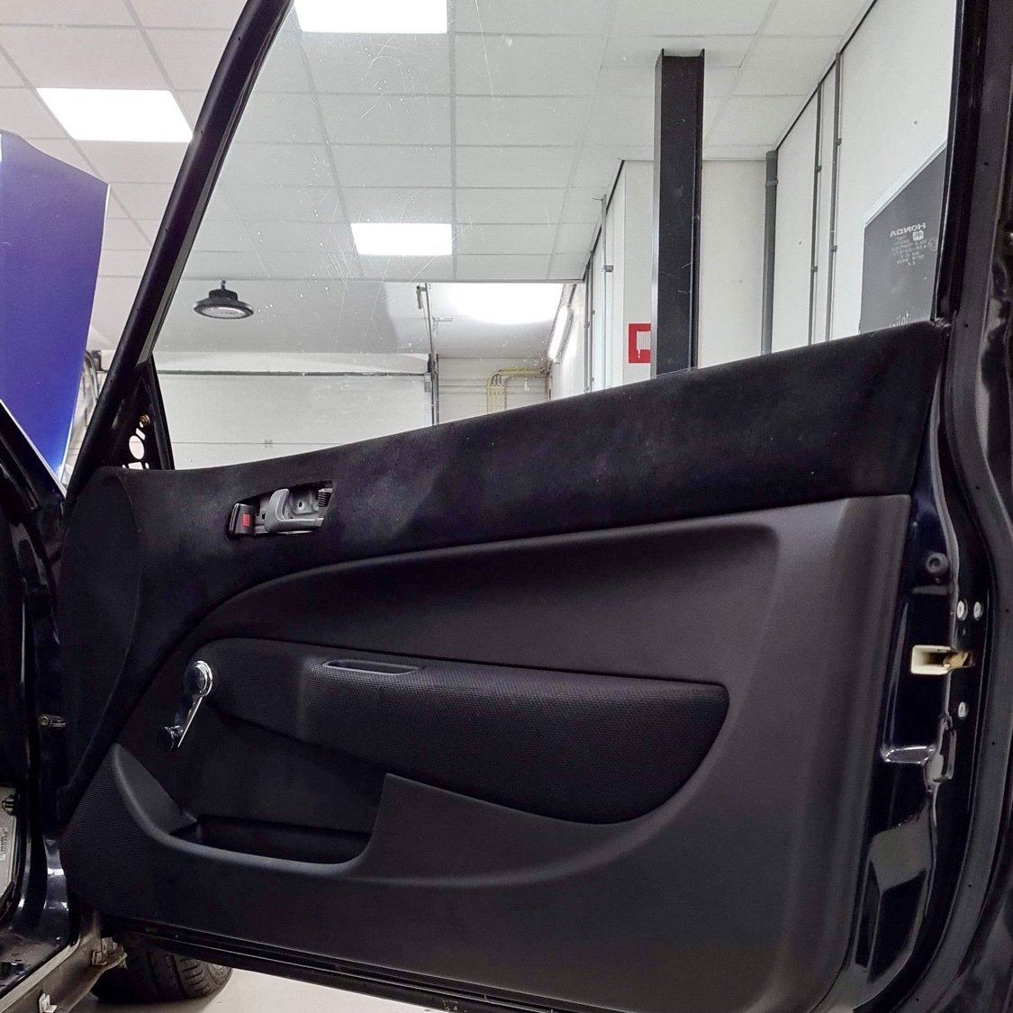 Flocking is the application of microfibres to a surface by applying it to a layer of glue. This creates an effect that is comparable to Alcantara or suede. This principle is widely applied within the packaging industry, but has mainly become popular in rally sports. Placing these fibers on the dashboard of the car ensures that the driver and coordinator are not blinded by reflected sunlight that falls on the dashboard. It's a simple and inexpensive way to fix the problem, and it looks cool too!